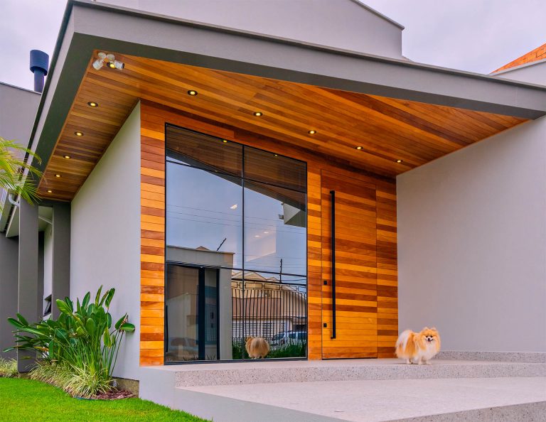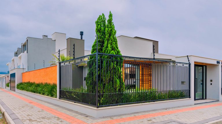 Essa casa foi feita através de uma reforma. Criamos um estilo moderno/industrial, com linhas retas e volumes bem marcados. Para dar o ar aconchegante e um visual mais quente trabalhamos com o madeira e o tijolo. A casa dispõe de um ambiente de lazer, e para que o casal aproveite o visual da rua, investimos em grades desenhadas, que além de lindas trazem segurança para família.